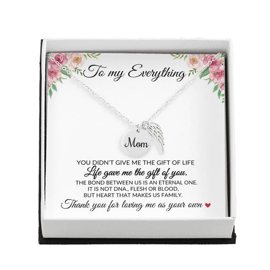 Carry your cherished memories of Mom with you always, thanks to our heartfelt Memorial Necklace. The word "Mom" is elegantly engraved on a delicately hand-polished coin, accented with black enamel for a striking contrast. This coin is beautifully paired with a delicate, polished Angel Wing tag, creating a meaningful and stylish accessory that keeps Mom's spirit close to your heart.