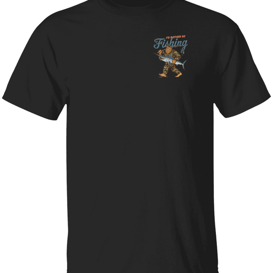 Ideal for fishing enthusiasts or Bigfoot believers, this tee combines comfort with a comedic twist. Grab yours today and showcase your love for the most elusive creature of the woods with a sense of humor!