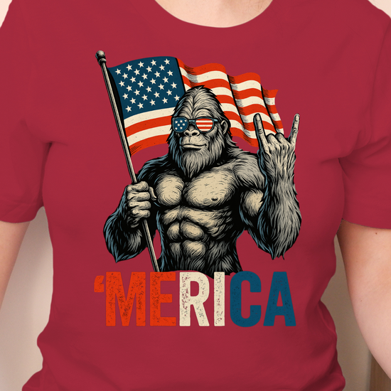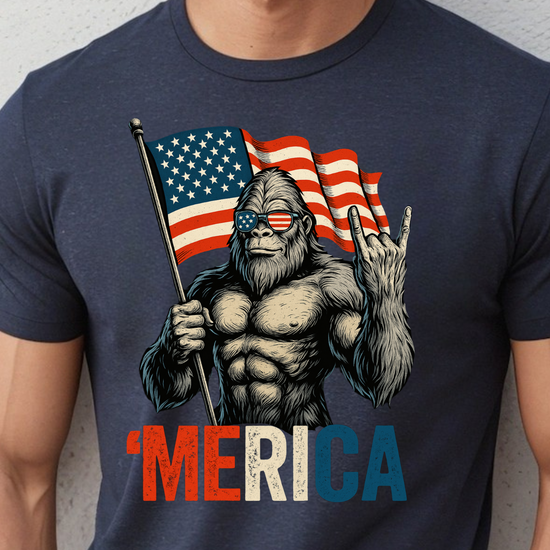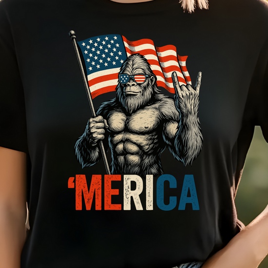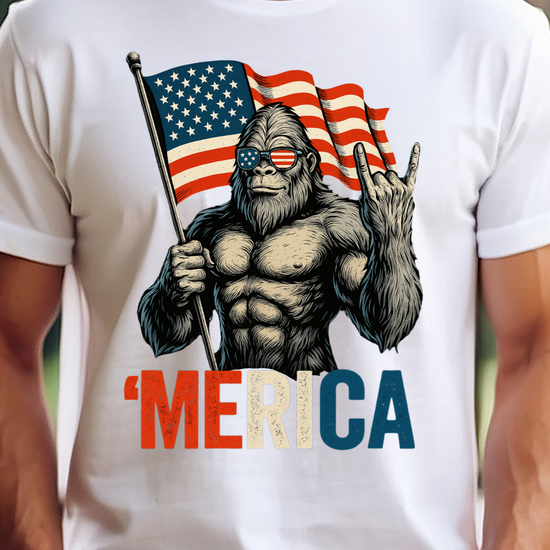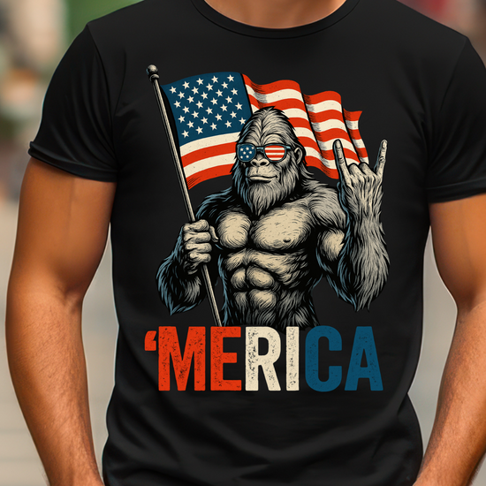 Bigfoot Merica Rock American Flag Patriotic 4th Of July T-Shirt
