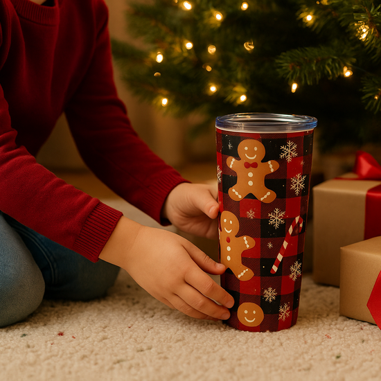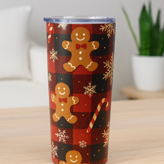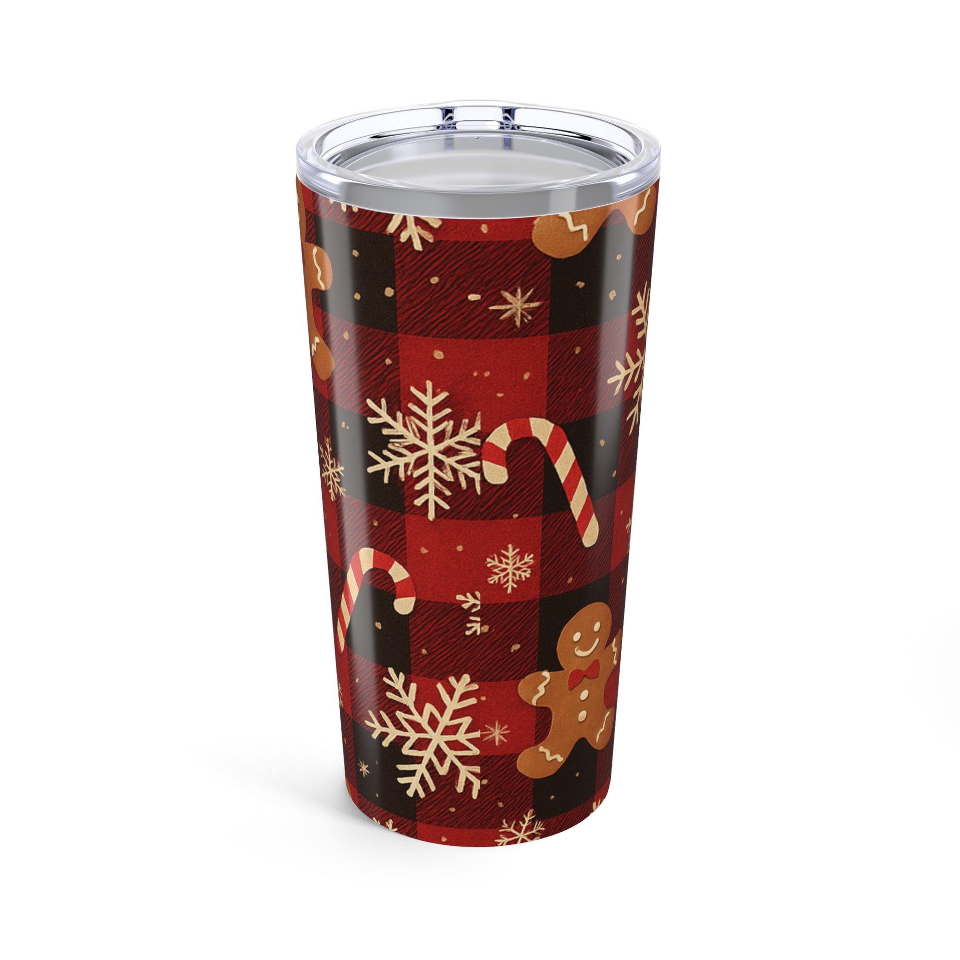 Christmas Plaid Tumbler, Gingerbread Man Insulated Tumbler, Holiday Drinkware Gift, 20oz Stainless Steel, Festive Design