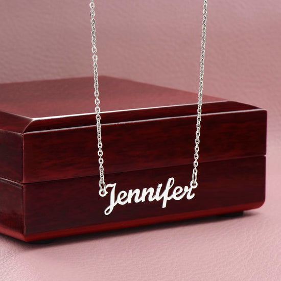 This stylish necklace features a cursive name design suspended on an 16”-18” adjustable cable chain, making it both personal and beautiful! Your necklace will be custom made upon ordering in the name or word of your choice, with up to 10 characters. It's a gift that they will surely want to keep close to their heart forever!