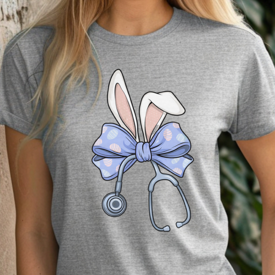 Easter Bunny Nurse Shirt, Cute Medical Tee, Bunny Ears Graphic, Spring Nurse Gift, Easter Bow Stethoscope, Bunny Ears Top, Unique Nurse Apparel