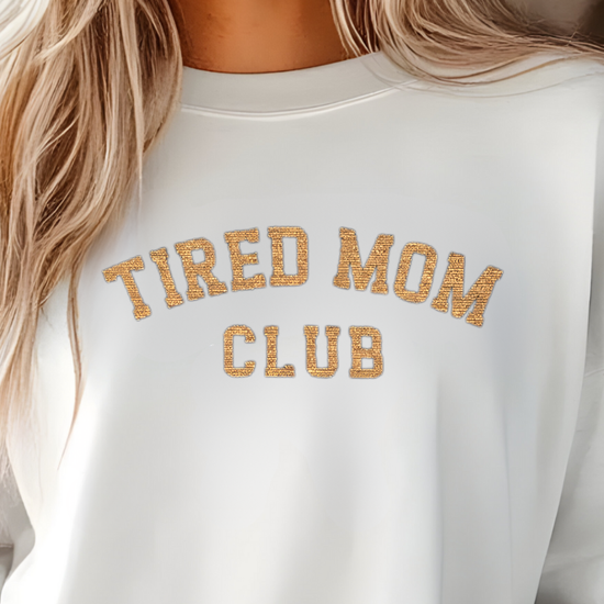 Embroidered Tired Mom Club Sweatshirt: Trendy Mama Sweatshirt