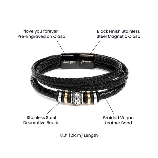 Are you looking for a gift as special as the man in your life? Then this Men's "Love You Forever" Bracelet is perfect! Engraved with a heartfelt message, this gift is great for birthdays, anniversaries, or just a thoughtful way to say "I love you". It's not just an accessory; it's a daily reminder of your love and appreciation. Whether it's your son, husband, or any deserving guy, this bracelet will have them grinning from ear to ear while rocking some serious style.
