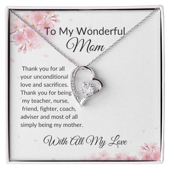 The dazzling Forever Love Necklace is sure to make her heart melt! This necklace features a stunning 6.5mm CZ crystal surrounded by a polished heart pendant embellished with smaller crystals to add extra sparkle and shine. Beautifully crafted with either a white gold or yellow gold finish, be sure to give her a classic gift she can enjoy everyday.
