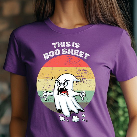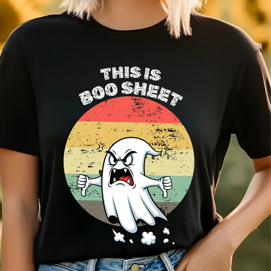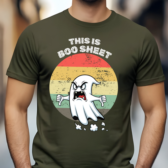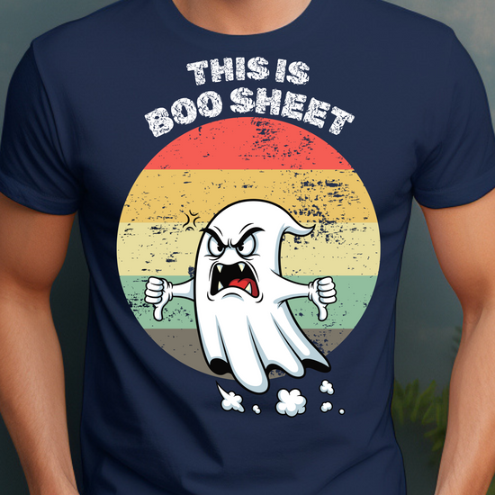 Step into a realm of humor and style with this unisex heavy cotton tee, featuring a quirky illustrated ghost design. The ghost, complete with an animated expression and fists, adds a playful touch, perfect for those who appreciate lighthearted Halloween themes.