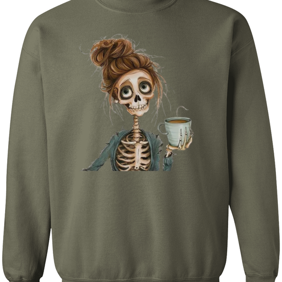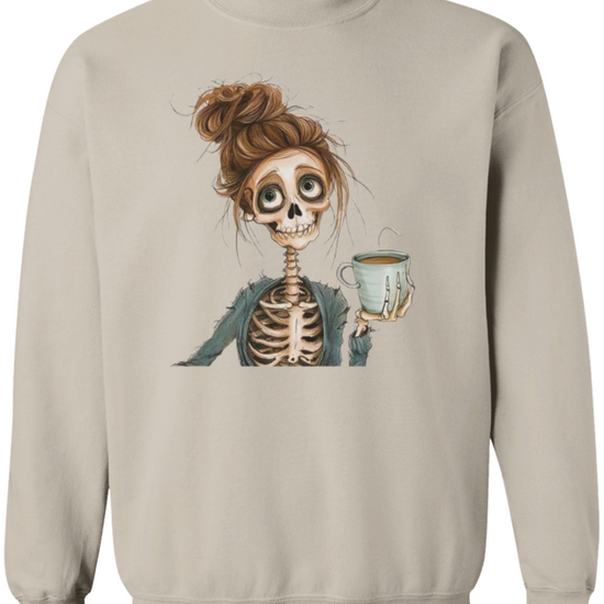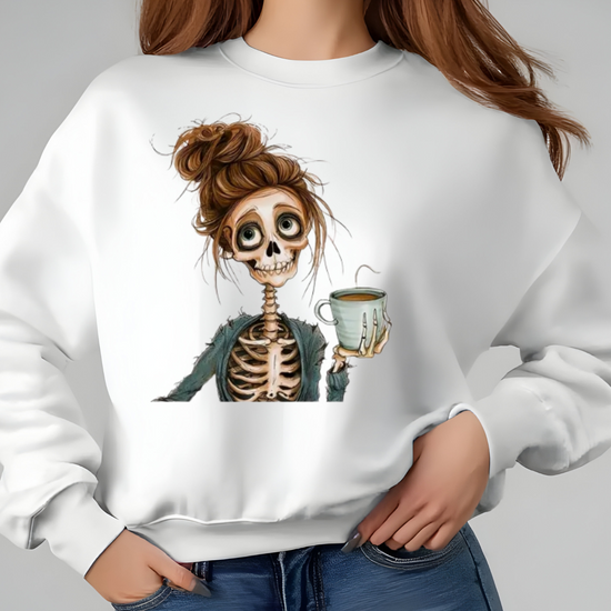 Funny Skull Girl Print Halloween Skeleton Coffee Sweatshirt