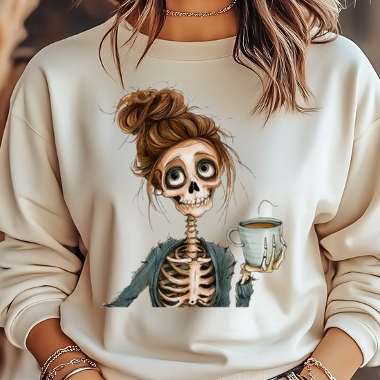 - **Design Details**: Detailed skeleton with a coffee mug, ideal for Halloween lovers and coffee enthusiasts.