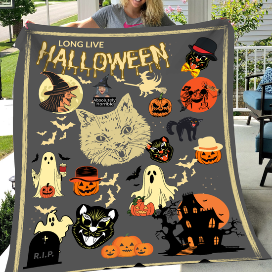 “Long Live Halloween – Vintage Spooky Blanket” 50x60 Cozy Plush Fleece Blanket