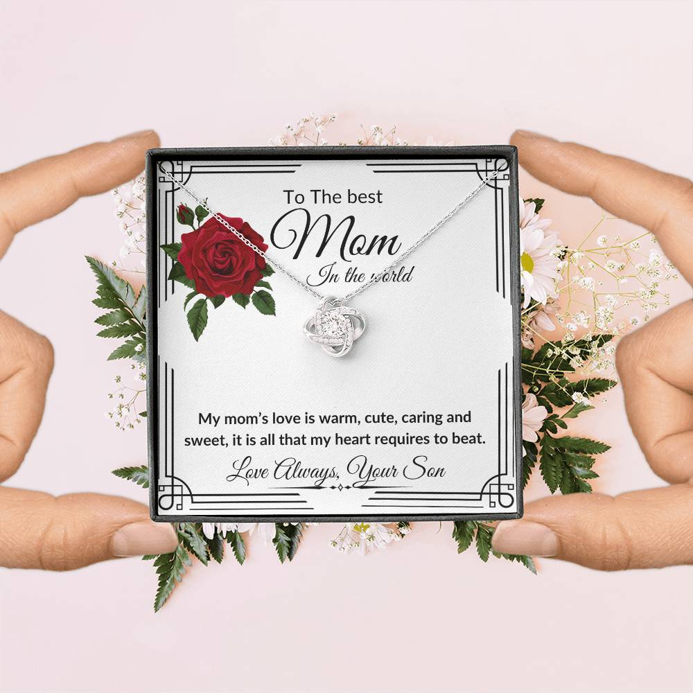 To the best Mom from Son "Caring and Sweet" Love Knot Necklace