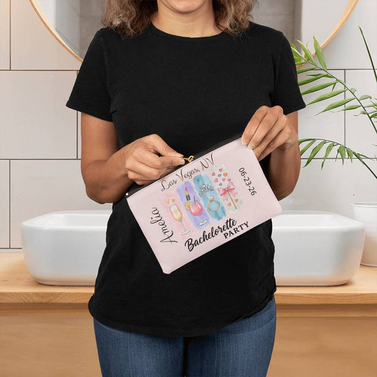 🎉 Get ready to add some flair and organization to your special events with our stunning Fabric Zippered Pouch! Perfect for bachelorette parties, this pouch offers both style and practicality for any bride-to-be and her entourage.