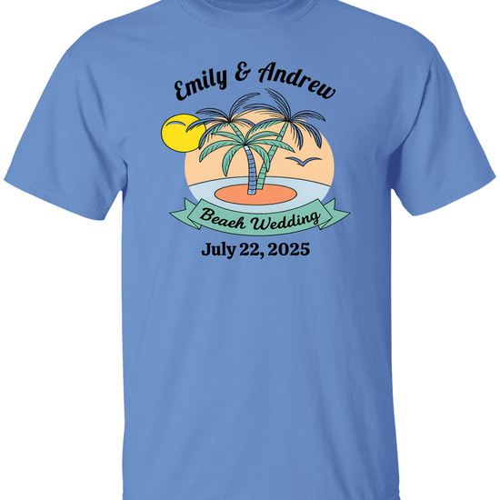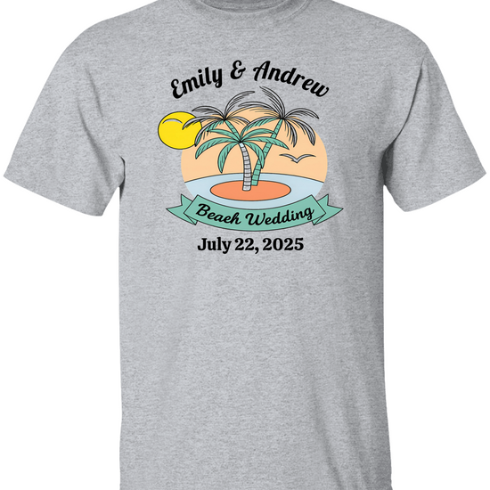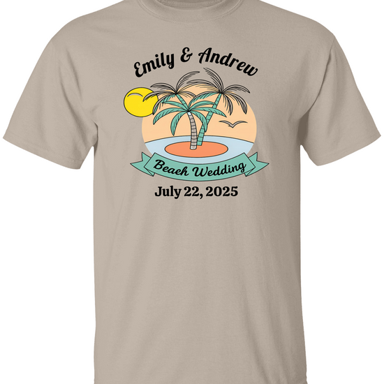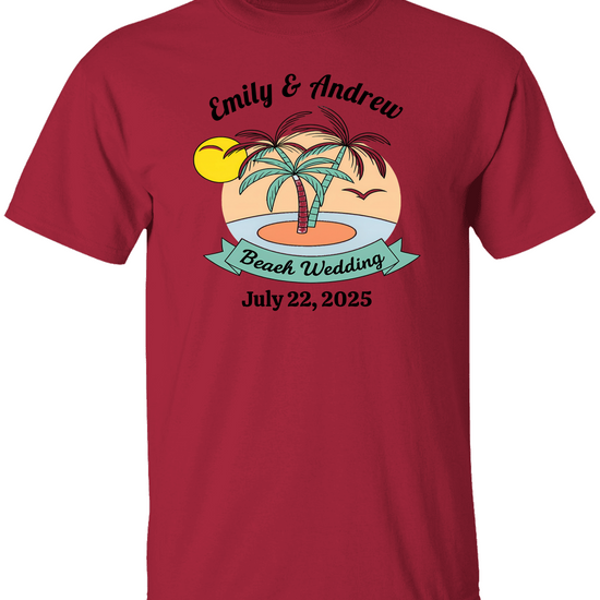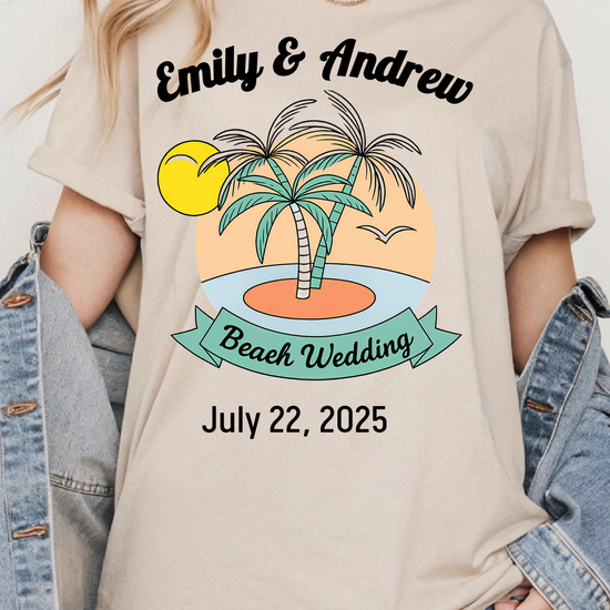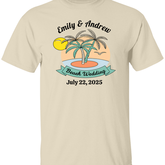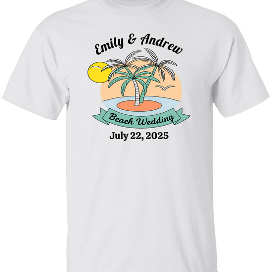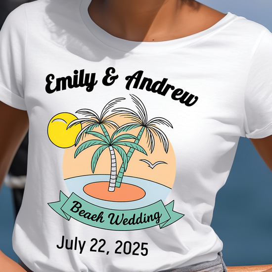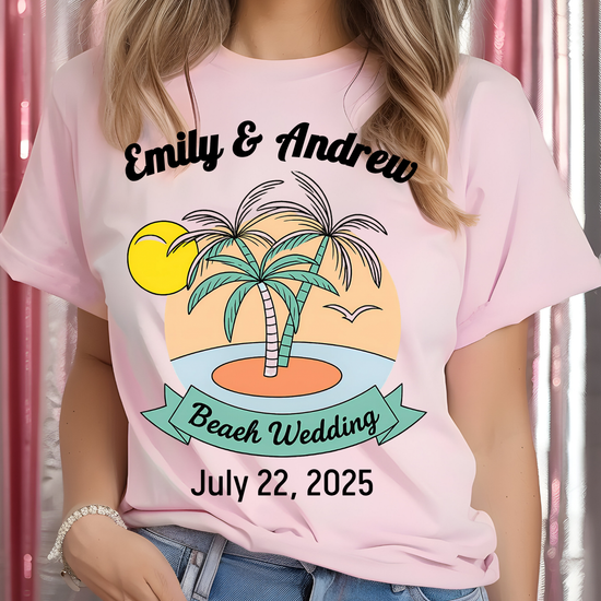 Personalized Beach Wedding Palm Tree Shirt, Custom Bride Groom Name Shirt, Tropical Destination Wedding Tee