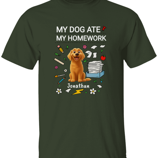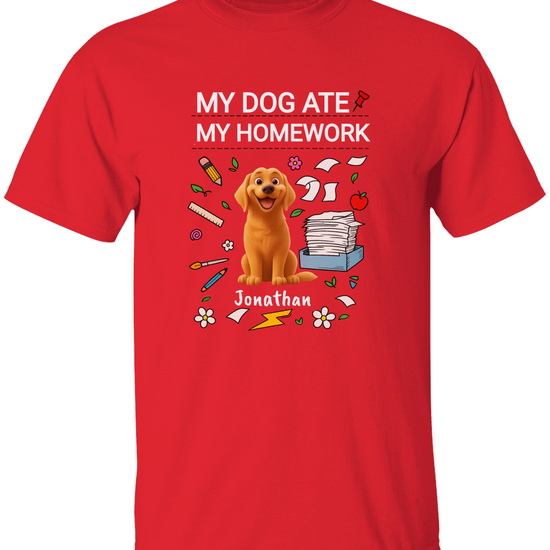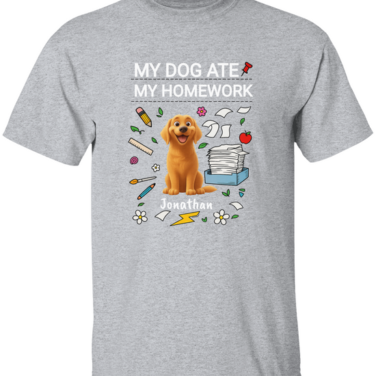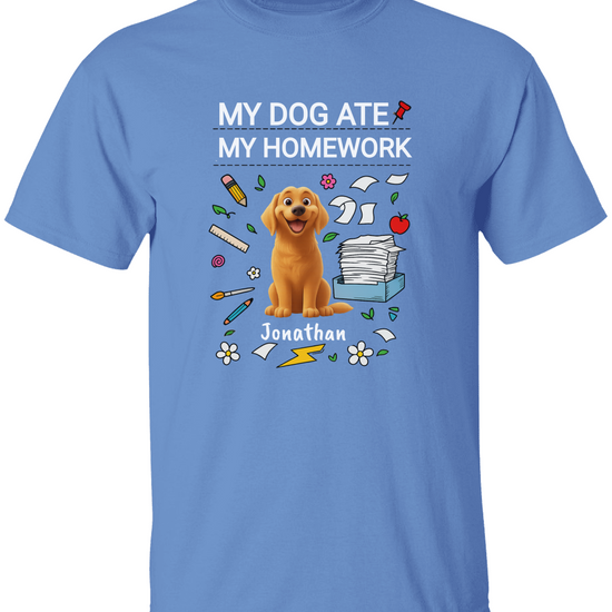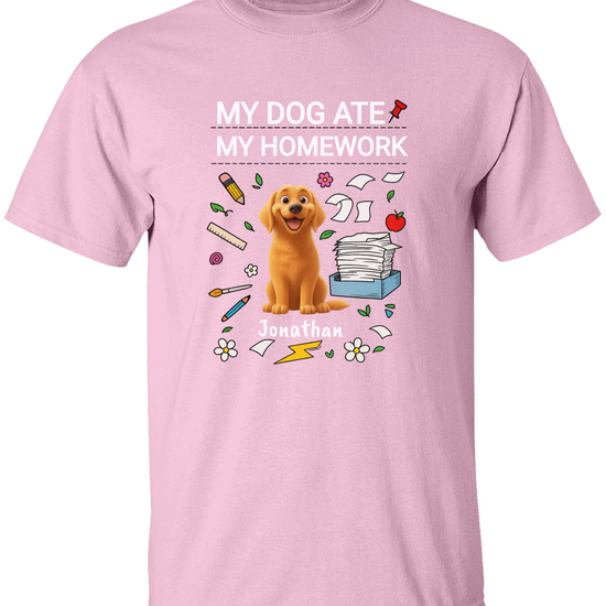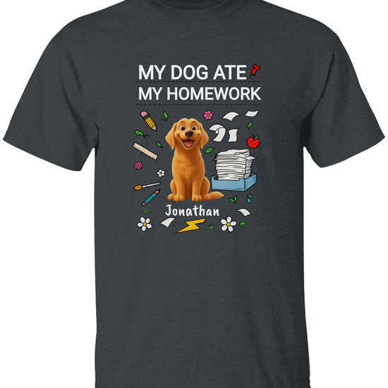 Your child will love this adorable kids' heavy cotton tee, perfect for school days and playtime. Highlights include a delightful illustration of a cute dog surrounded by playful elements like pencils, music notes, and a stack of homework papers, bringing smiles and fun to their wardrobe.