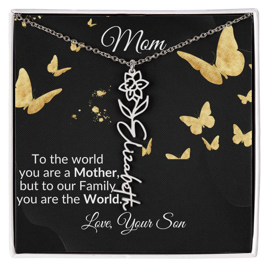 Need a gift that's as unique as she is? Then look no further than our Flower Name Necklace! With a customizable birth flower design, this necklace is a meaningful addition to any jewelry collection. Whether you're dressing up for a special occasion or simply want to add some flair to your everyday look, this necklace is perfect for your special someone. Handcrafted from high-quality materials, it is both stylish and durable. So why wait? Personalize your own floral name necklace today!