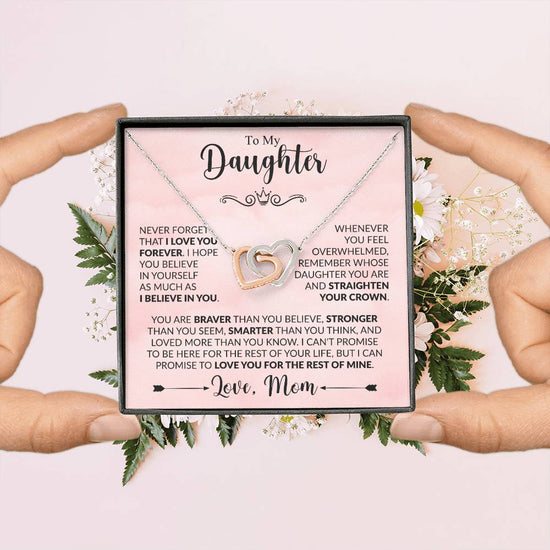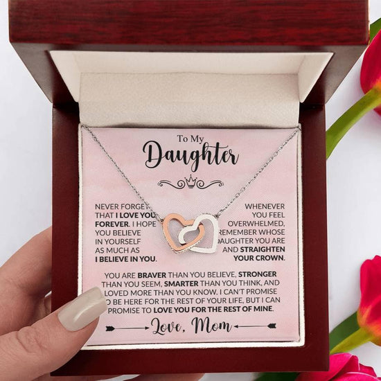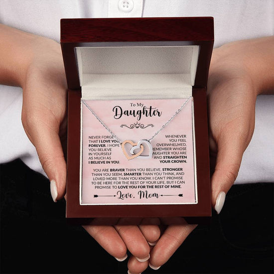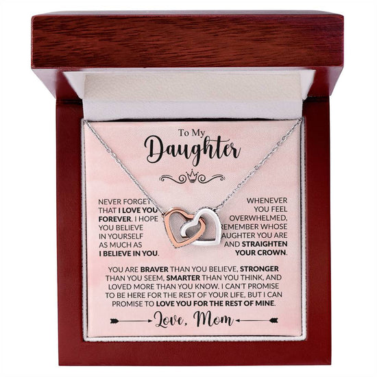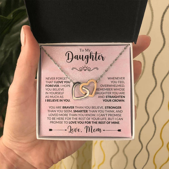 To My Daughter "Stronger Than You Seem" Interlocking Hearts Necklace!