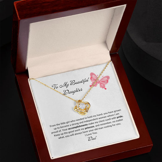 To my Daughter from Dad "My Beautiful Daughter" Love Knot Necklace