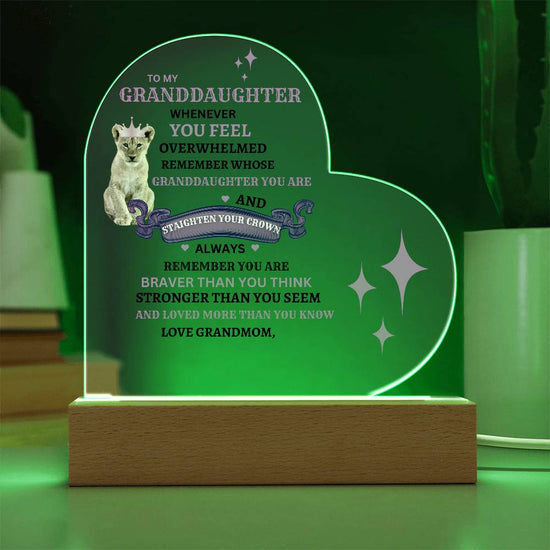To My Granddaughter "Straighten Your Crown" Acrylic Heart Plaque w/LED Lighting!