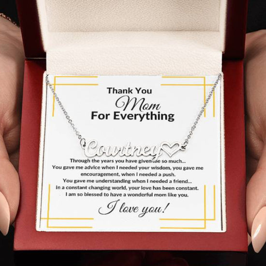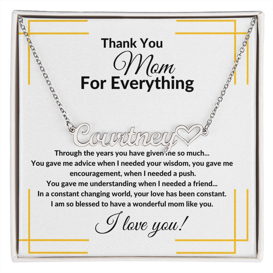 To My Mother "Thank You For Everything" Name Necklace w/Heart Character