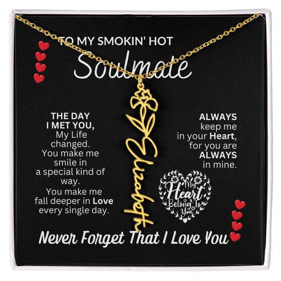 To My Soulmate " Smokin' Hot Soulmate' Flower Name Necklace