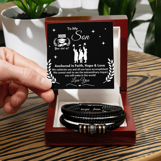 Are you looking for a gift as special as the man in your life? Then this Men's "Love You Forever" Bracelet is perfect! Engraved with a heartfelt message, this gift is great for birthdays, anniversaries, or just a thoughtful way to say "I love you". It's not just an accessory; it's a daily reminder of your love and appreciation. Whether it's your son, husband, or any deserving guy, this bracelet will have them grinning from ear to ear while rocking some serious style.