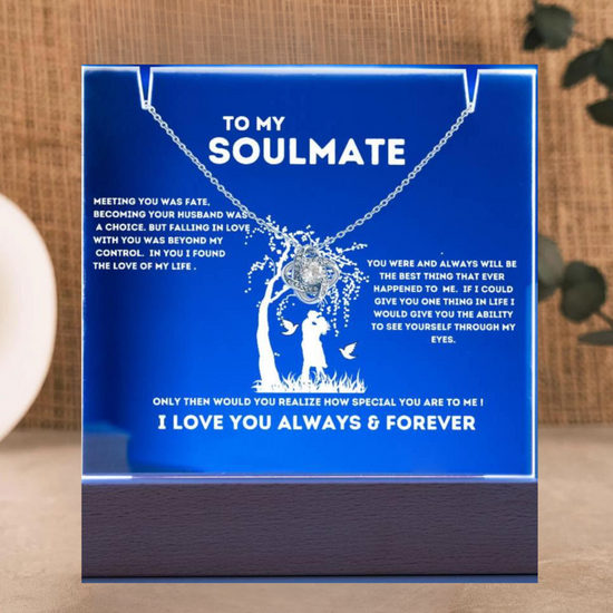 To My Soulmate "Meeting You Was Fate" Keepsake Nite Light Acrylic Plaque with the Beautiful Love Knot Necklace!