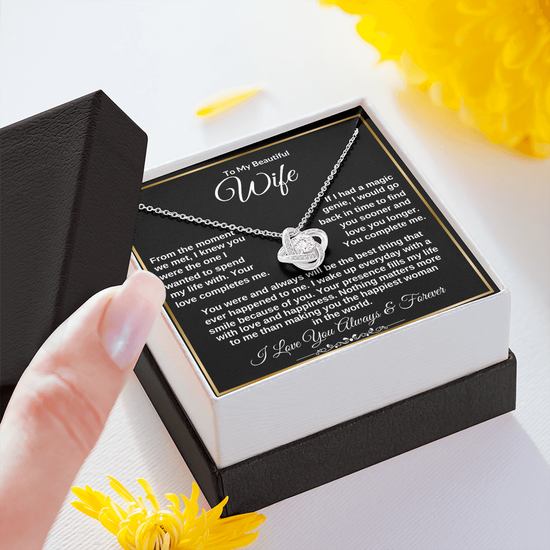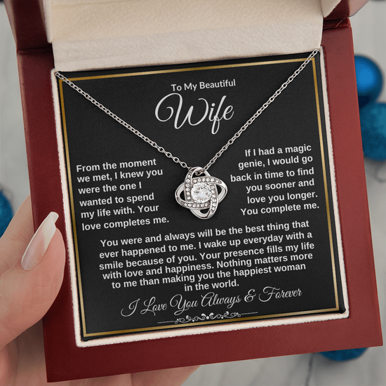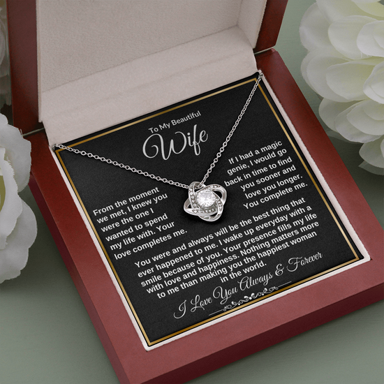 To My Wife "Your Presence fills my Life with Love" Love Knot Necklace!