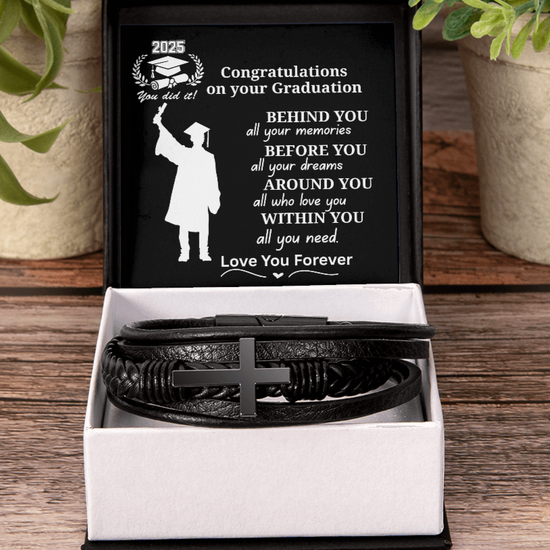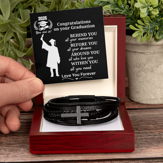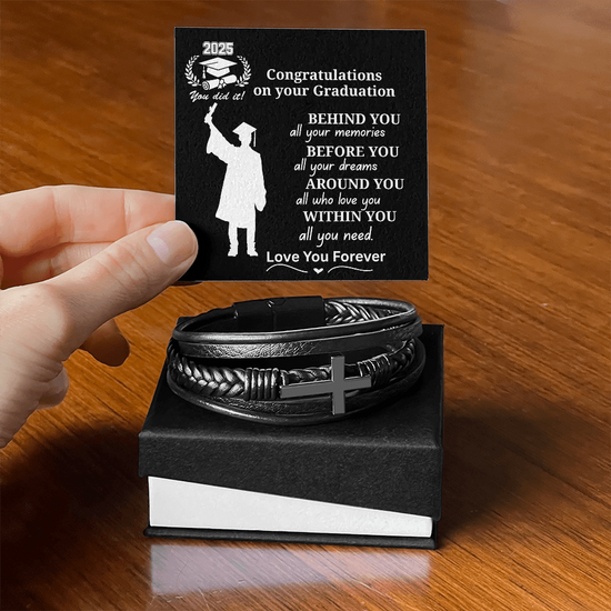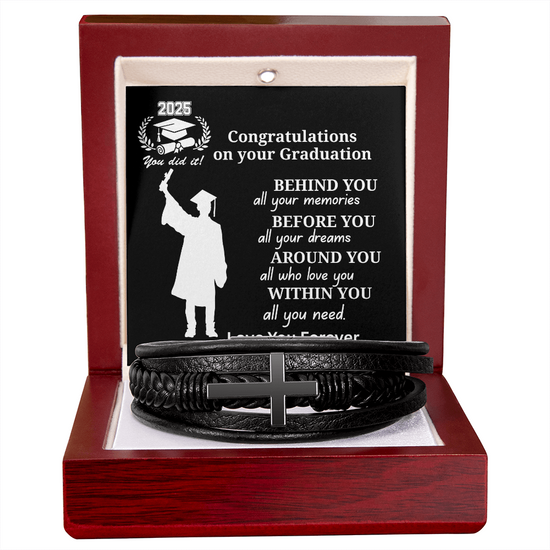 To My Son 2025 Graduate "Congrats on Your Graduation Day" Men's Cross Bracelet